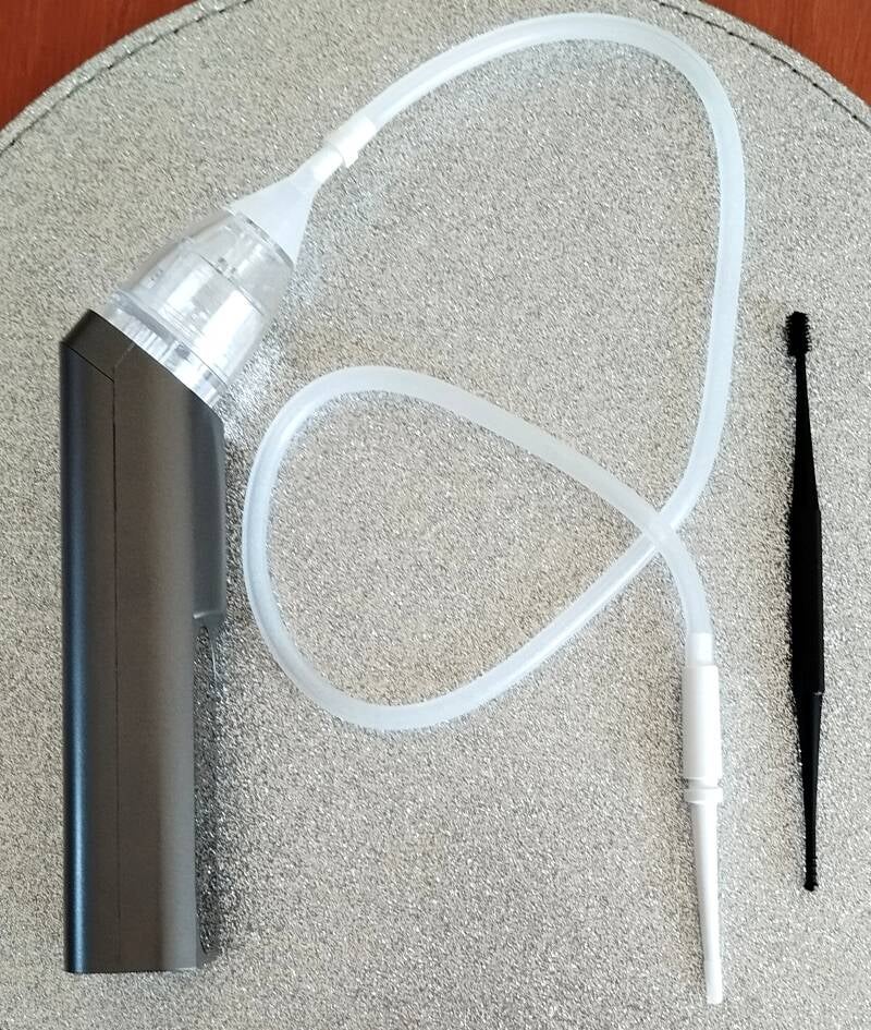 Once the quantity and position of wax has been determined, a small, handheld machine that acts like a vacuum is used to suction the wax from the ear. The soft, flexible tip helps to gently loosen the wax and the vacuum then suctions it out.